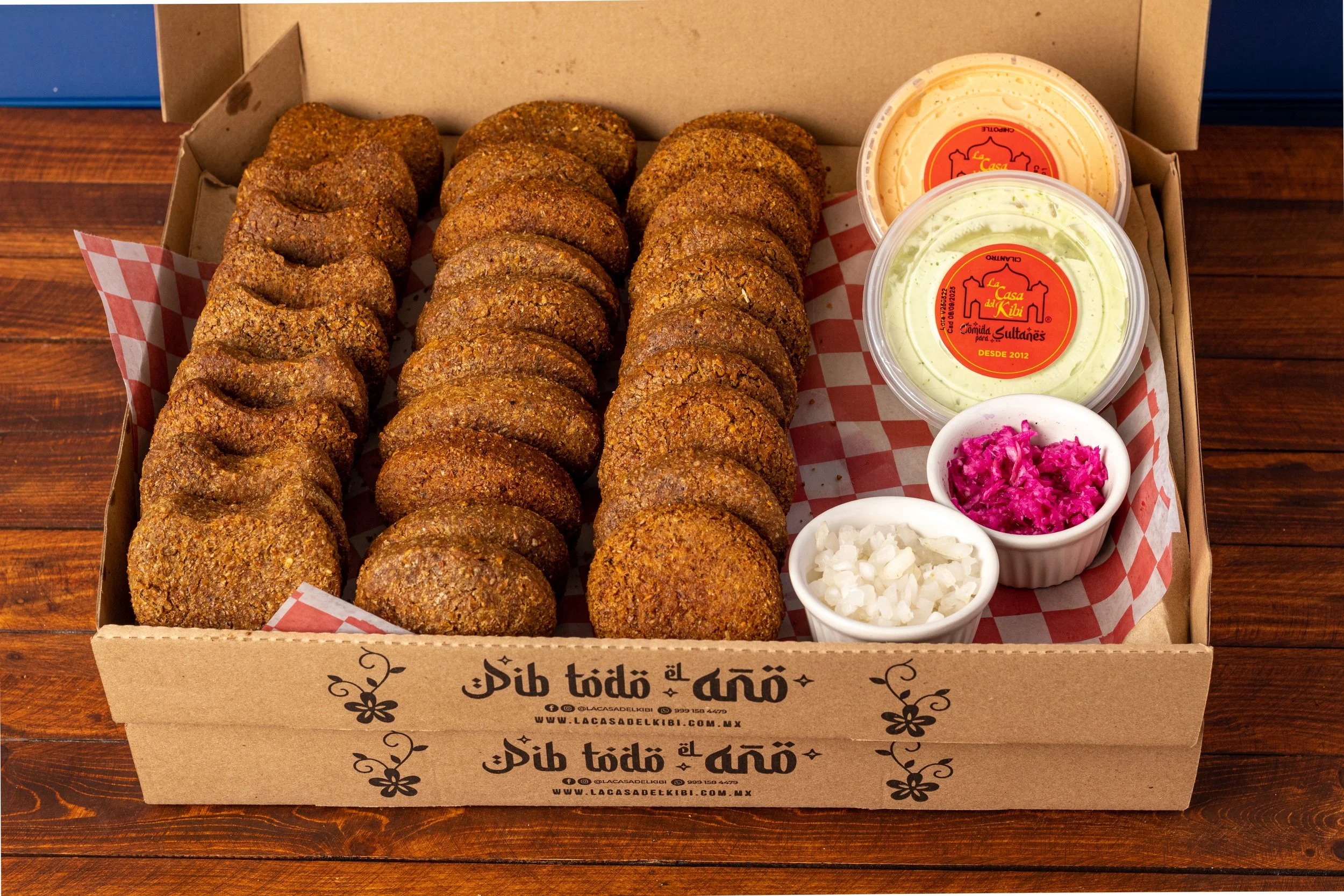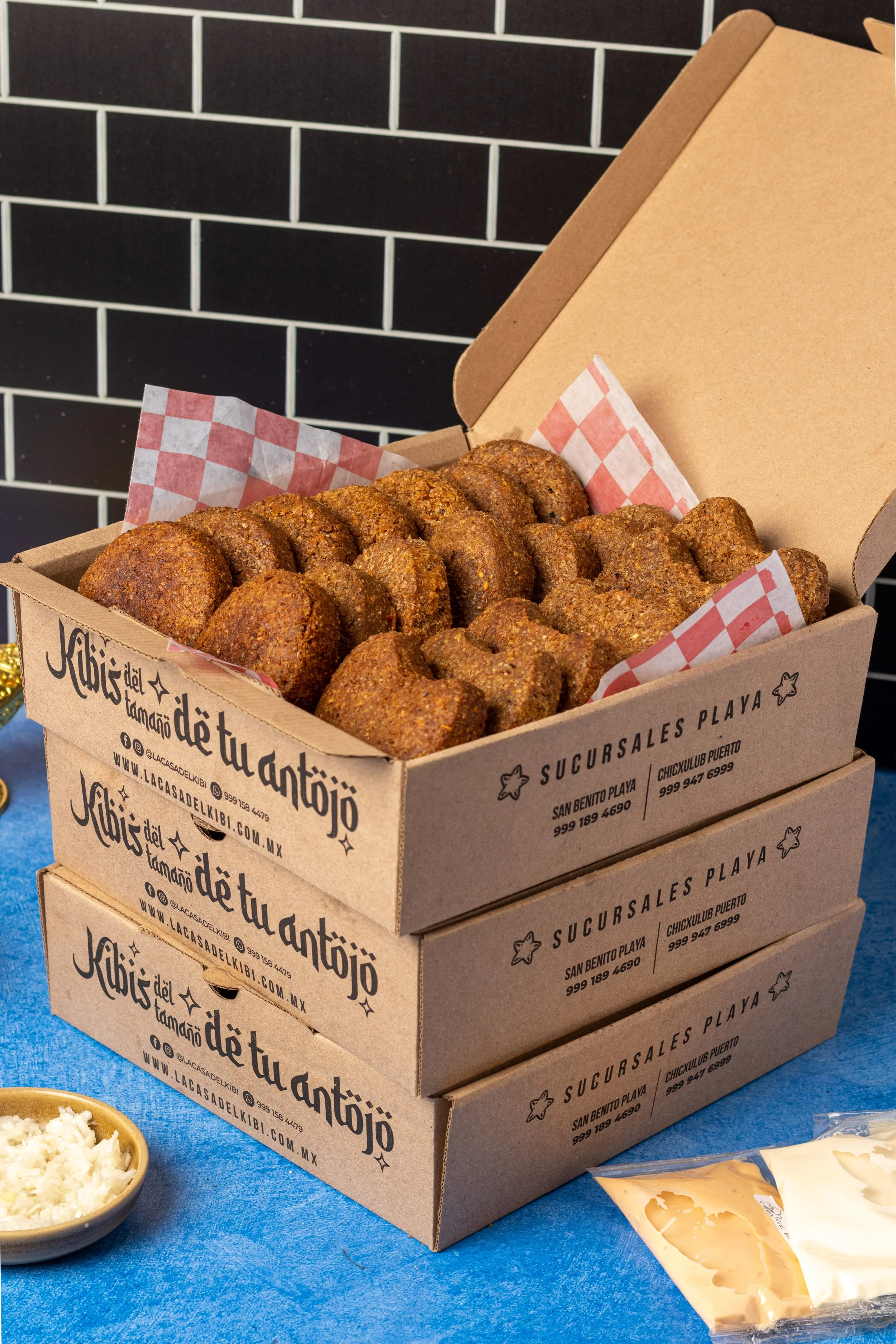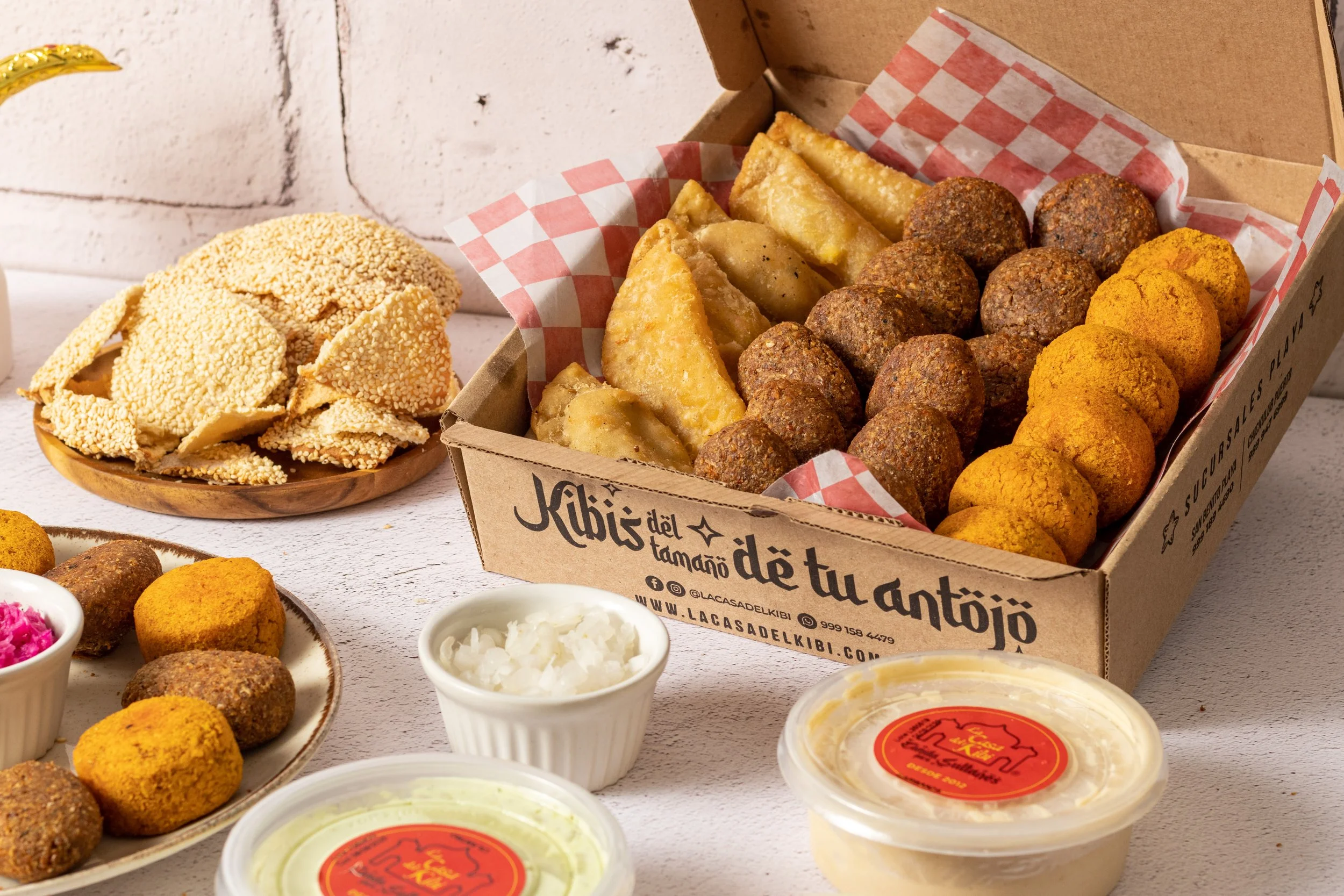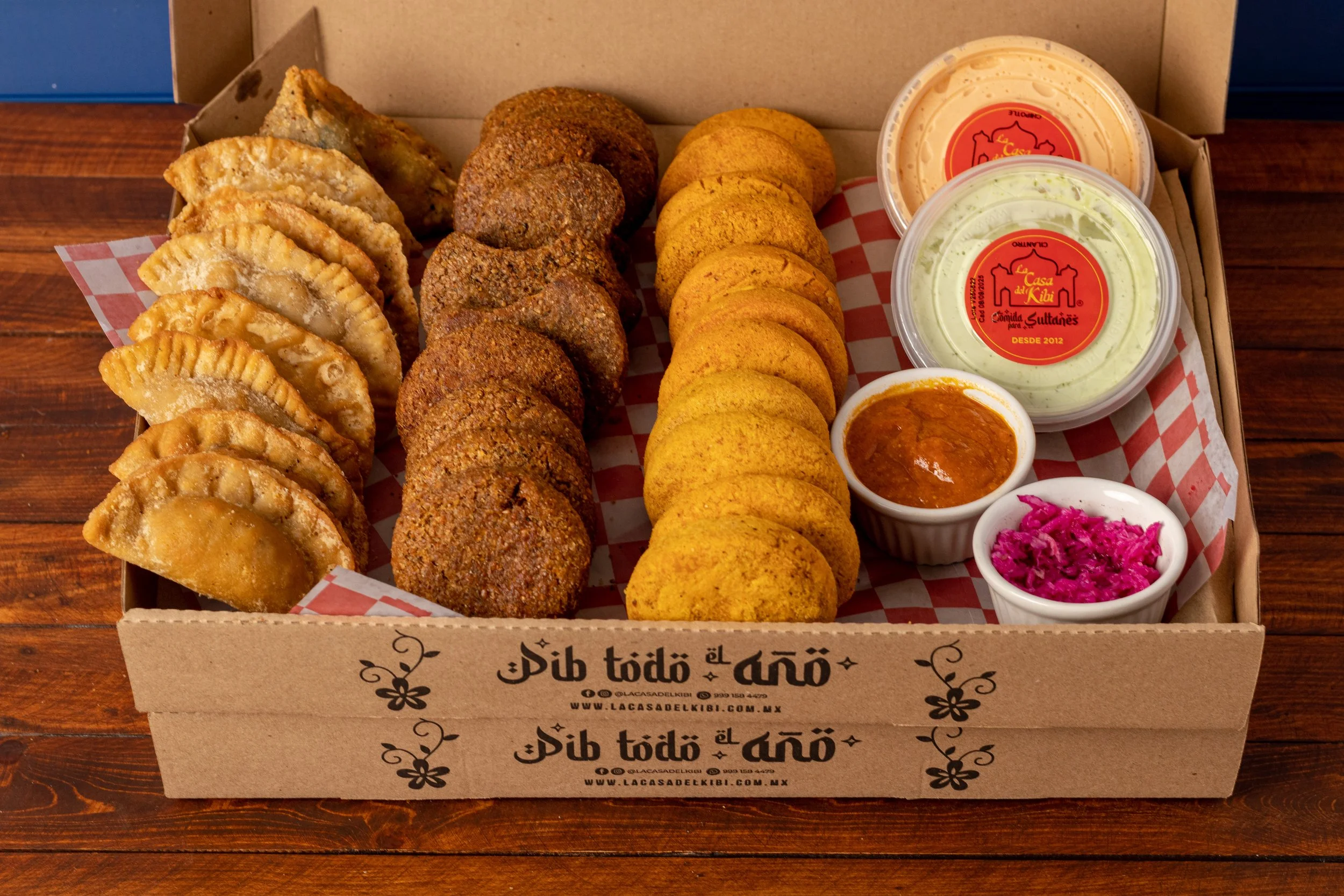 Incluye: 10 kibis bocadillo de carne molida, 10 kibis bocadillo de queso de bola y 3 cremas mini (ajo, xcatic, chipotle). ¡Imprescindible en tus juntas de trabajo!