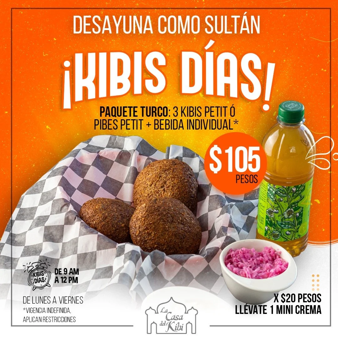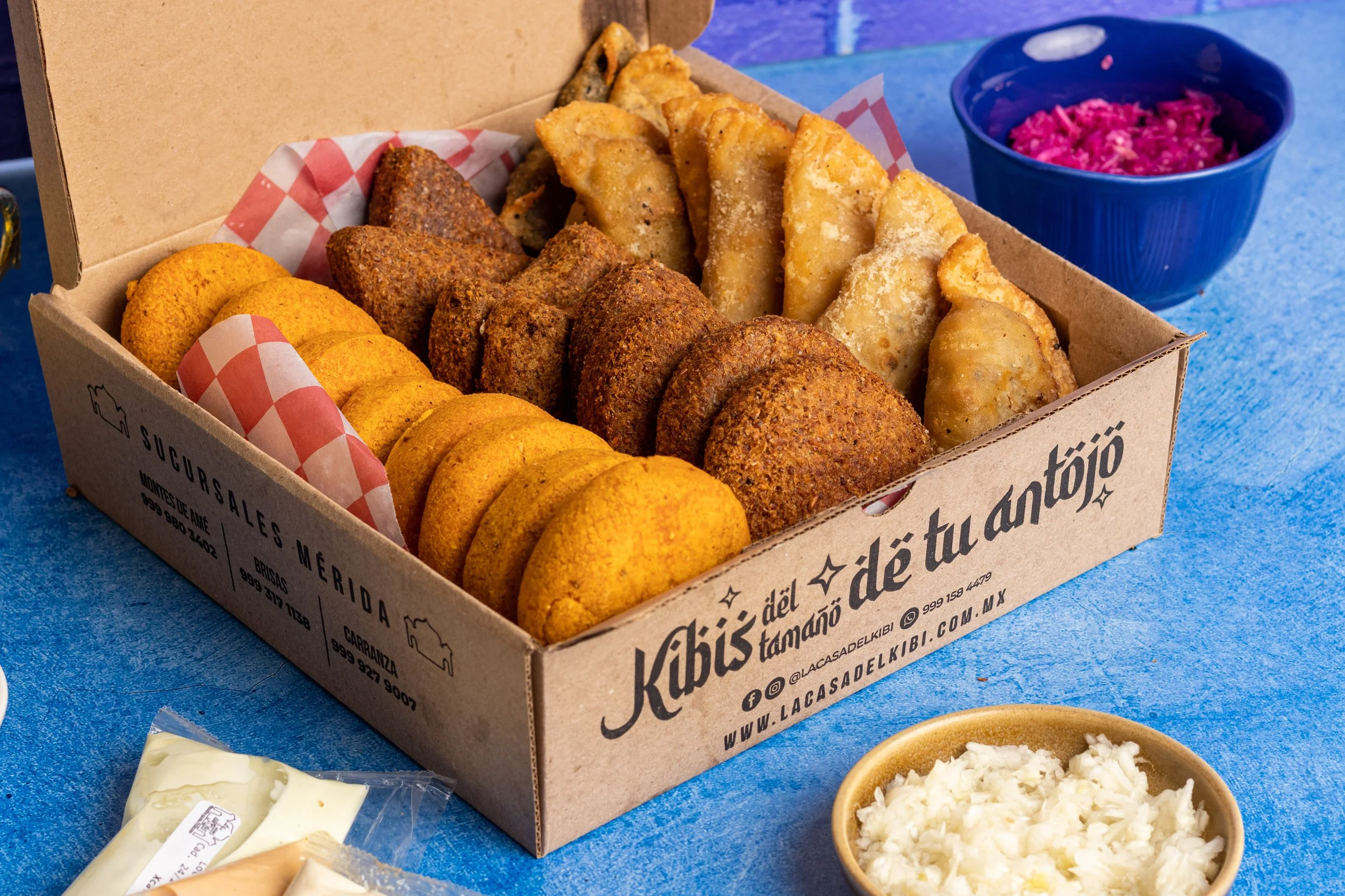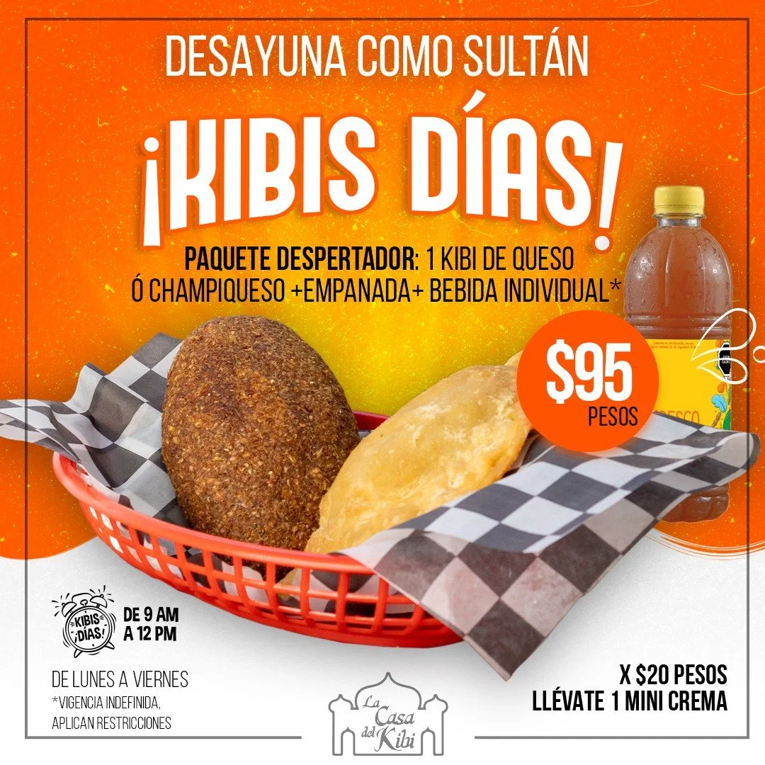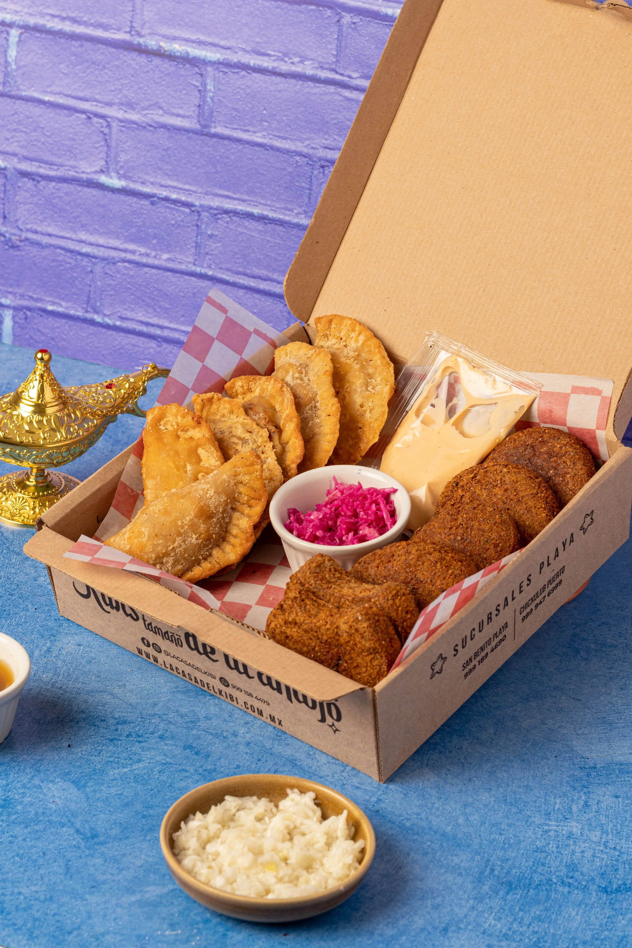 Incluye: 10 kibis bocadillo de carne molida, 10 kibis bocadillo de queso de bola y 3 cremas mini (ajo, xcatic, chipotle). ¡Imprescindible en tus juntas de trabajo!