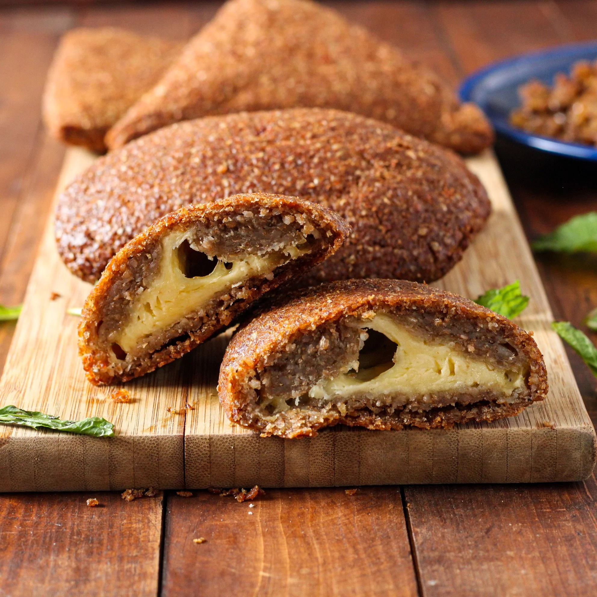 incluye: 5 kibis rellenos medianos (carne molida, queso de bola, champiqueso)
